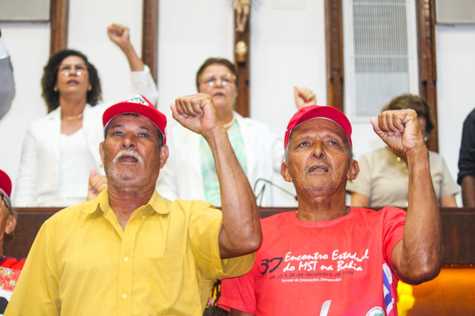 O evento reuniu centenas de pessoas, entre homens, mulheres, jovens, crianças e idosos, que marcharam de forma pacífica até o Legislativo baiano para participar da atividade. A mobilização reafirmou o compromisso com a memória, a justiça e a defesa dos direitos dos trabalhadores e trabalhadoras do campo.